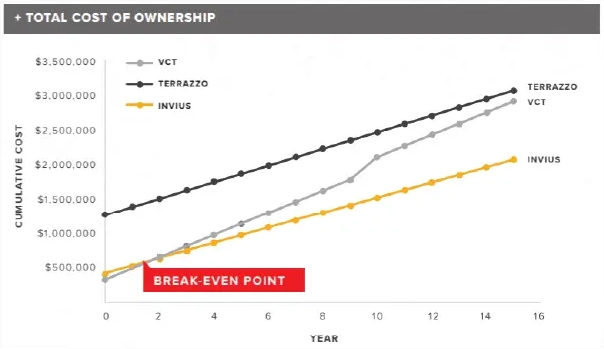 By comparison, INVIUS never needs stripping, waxing, sealing, or finishing.